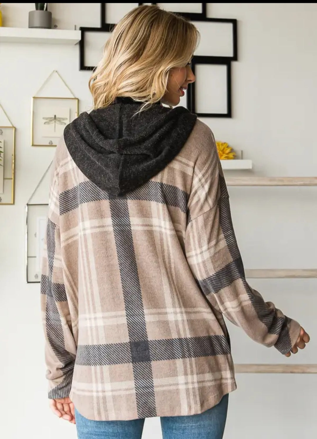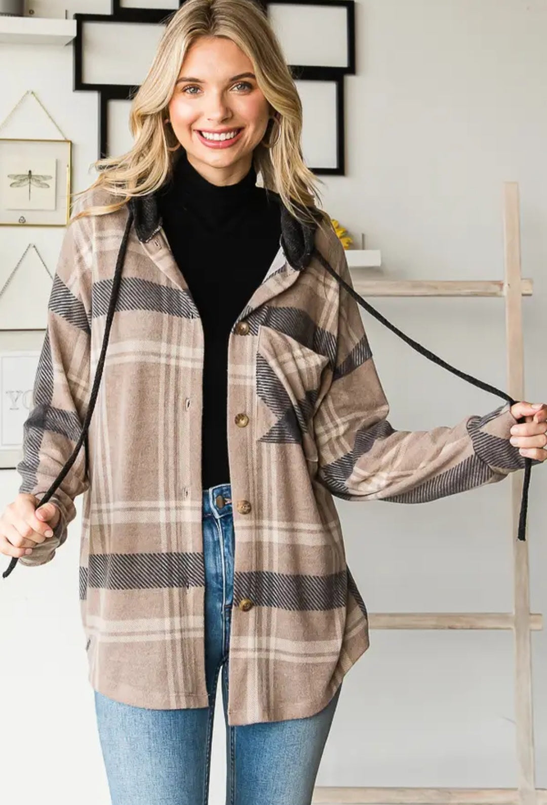 Product Details Autumn Hooded Flannel Ultra soft and ultra cozy this is the perfect fall button up. Front pocket, fabric hood, drawstrings, and button up front. Runs true to size, has some stretch. Stay in your true size...Read more
